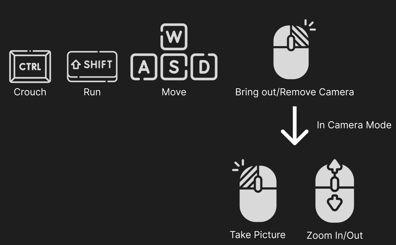 Really interesting game! Especially with the time you had for this jam. It's interesting to try to blend in using emotions and to use a camera to try to reflect what you observe. Not sure if the crouch aspect was to be used for stealth, but the time you gave for getting spotted was quite lenient, so I ended up running past before getting spotted. One small thing; I did not get my mouse back after completing the level. I saw the button to go to the Main Menu, but I did not have my mouse to click on it. Good job on the game and congrats to the team! :)